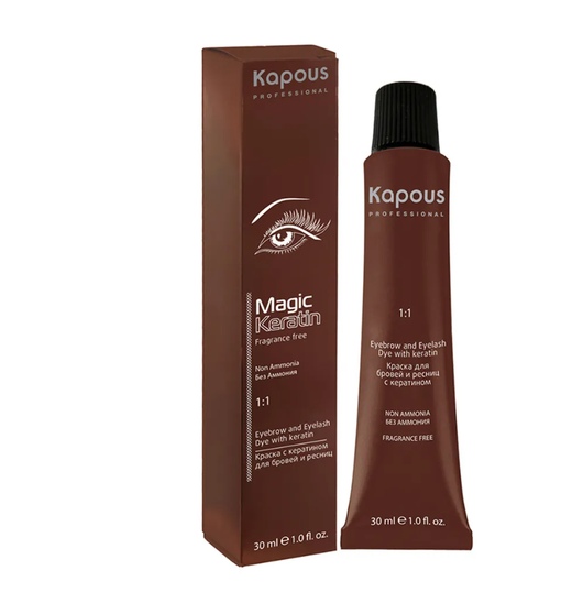 Крем-краска для бровей и ресниц «Magic Keratin» не содержит аммония и фенилендиамина. Благодаря Кератину гарантирует насыщенный цвет минимум на 6 недель. Краска устойчива к воздействию воды и солнцезащитного крема. Формула содержит красящие вещества нового поколения, проста и удобна в применении, легко смешивается и наносится. Совет: наилучший эффект Вы получите, если окрасите брови немного светлее, чем ресницы. Представлена в четырех цветах: черный, иссиня - черный, коричневый, графит. Разводится с «Hyaluronic Cremoxon» 3% или 6% (в зависимости от толщины волос), в пропорции 1:1. Время выдержки 6-10 минут. Меры предосторожности: перед использованием ознакомиться с инструкцией по применению и провести тест на чувствительность. Препарат может вызвать аллергическую реакцию. Во избежание причинения вреда не применять краску для бровей и ресниц, если клиент ранее имел раздражение или аллергическую реакцию при окрашивании, а также в случае повреждения кожного покрова. В случае возникновения нежелательных реакций, таких как: жжение, покалывание, раздражение, препарат немедленно смыть теплой водой. Перед последующим окрашиванием необходима консультация врача-дерматолога. Тест на чувствительность: данный тест обеспечивает разумную предосторожность, проводится на внутренней поверхности локтевой зоны. Нанести небольшое количество красителя на внутреннюю сторону локтевого сгиба. По истечении 15-20 минут тщательно смыть теплой водой. Если нежелательная реакция возникнет в течение времени воздействия или в последующие 24 часа, то данный краситель не может быть использован для окраски бровей и ресниц.