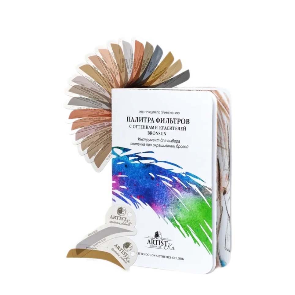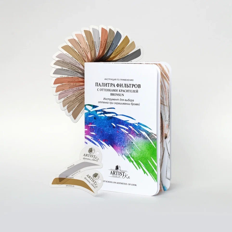 Прикладывайте фильтры с оттенками к бровям клиента пи выбирайте.