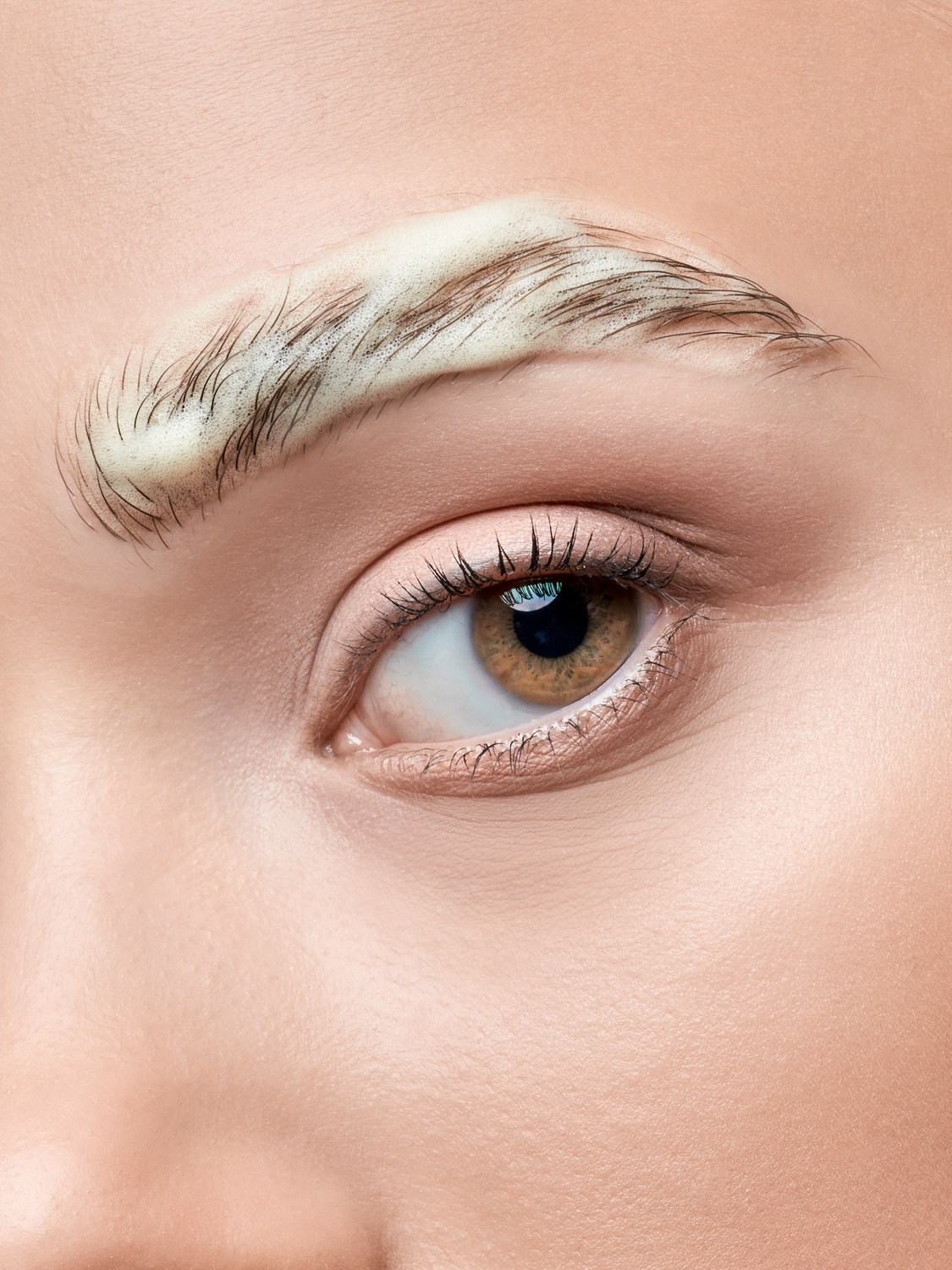 Для бровей: небольшое количество пенки нанесите в зону роста бровей щеточкой, прочешите и смойте водой.