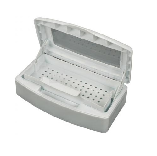 Пластиковый секционный контейнер для стерилизации/дезинфекции маникюрного и педикюрного инструмента.