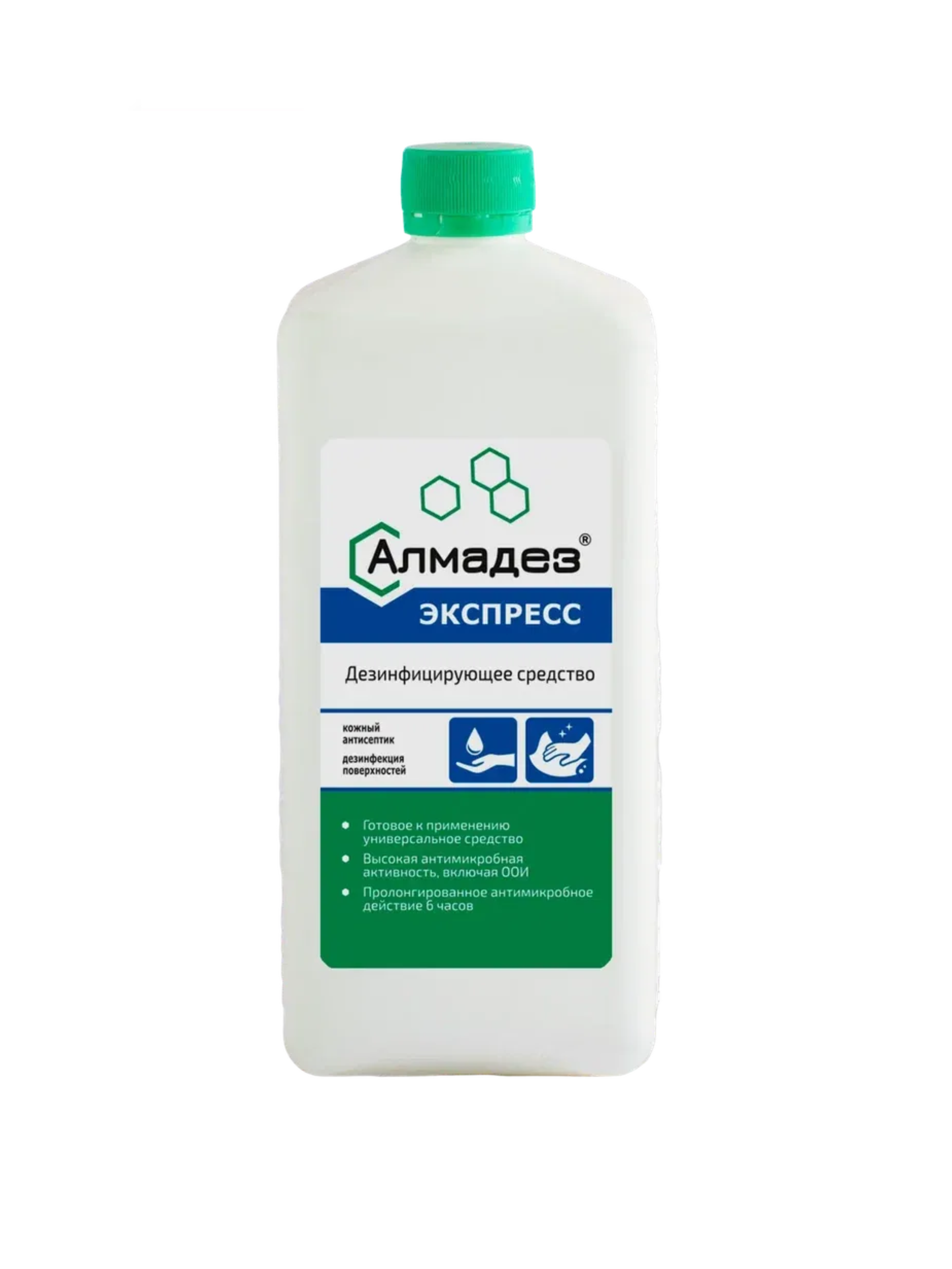 Средство 2 в 1: кожный антисептик и дезинфекция поверхностей. Средство «Алмадез-экспресс» представляет собой готовую к применению прозрачную бесцветную жидкость со специфическим запахом изопропилового спирта без посторонних механических включений.