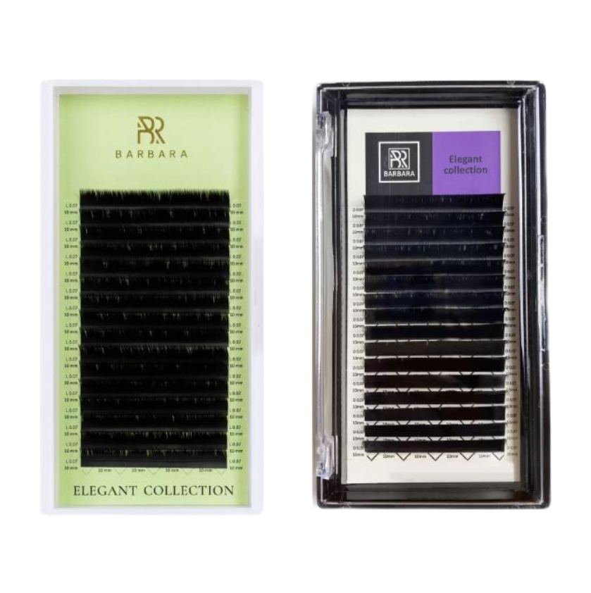 Ресницы Barbara производят из лучшего южнокорейского волокна. Ресницы серии Elegant выполнены в технологии двойного сужения. Каждая ресничка имеет сужение от основания к середине ресницы и от середины к кончику. Ресницы получаются мягкими и невесомыми.