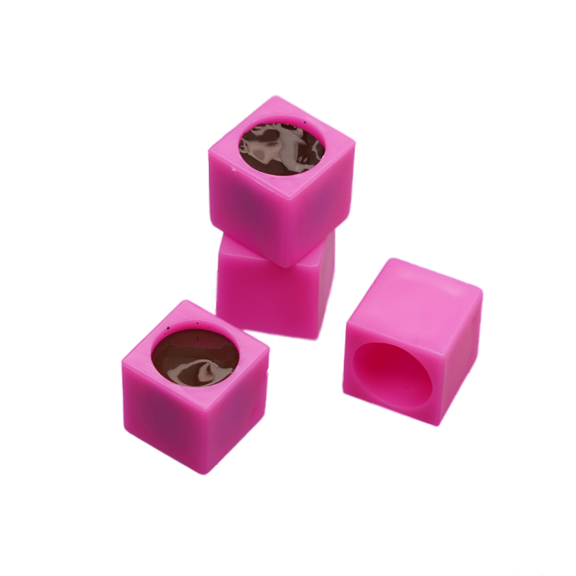 Уникальный дизайн в виде куба позволяет ставить колпачок на любую ровную поверхность. Внутренняя часть имеет специальную пулевидную форму для максимального захвата пигмента иглой.