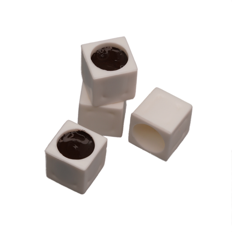 Уникальный дизайн в виде куба позволяет ставить колпачок на любую ровную поверхность. Внутренняя часть имеет специальную пулевидную форму для максимального захвата пигмента иглой.